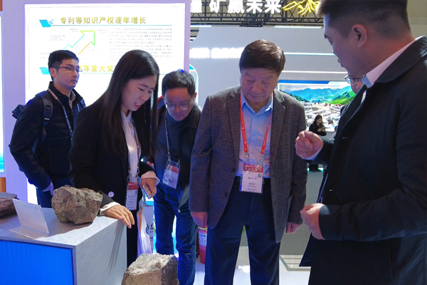 大会开幕式前,许大纯一行巡展时来到总局展台,听取了王文军关于总局矿产资源开发与未来勘探系统有关情况的汇报。